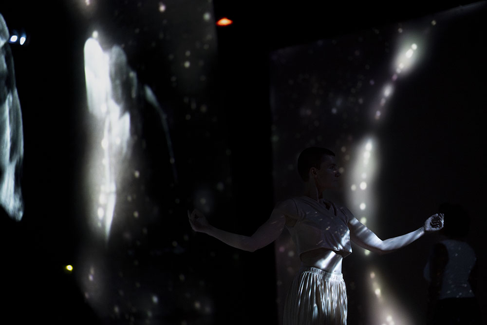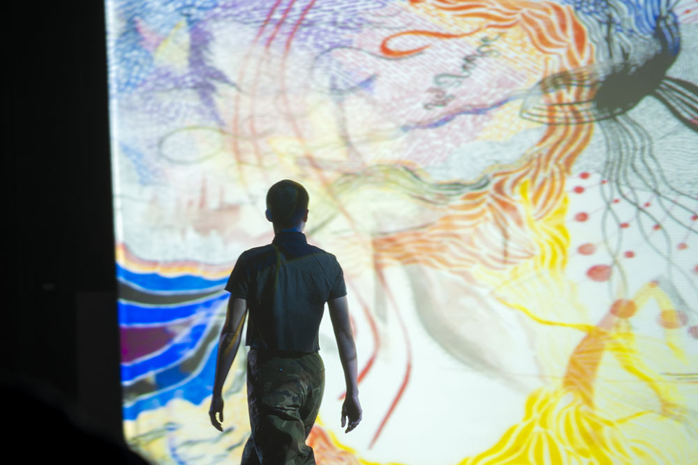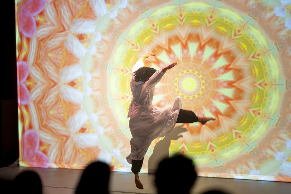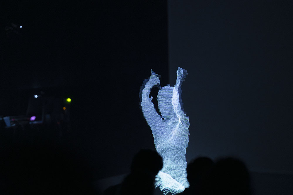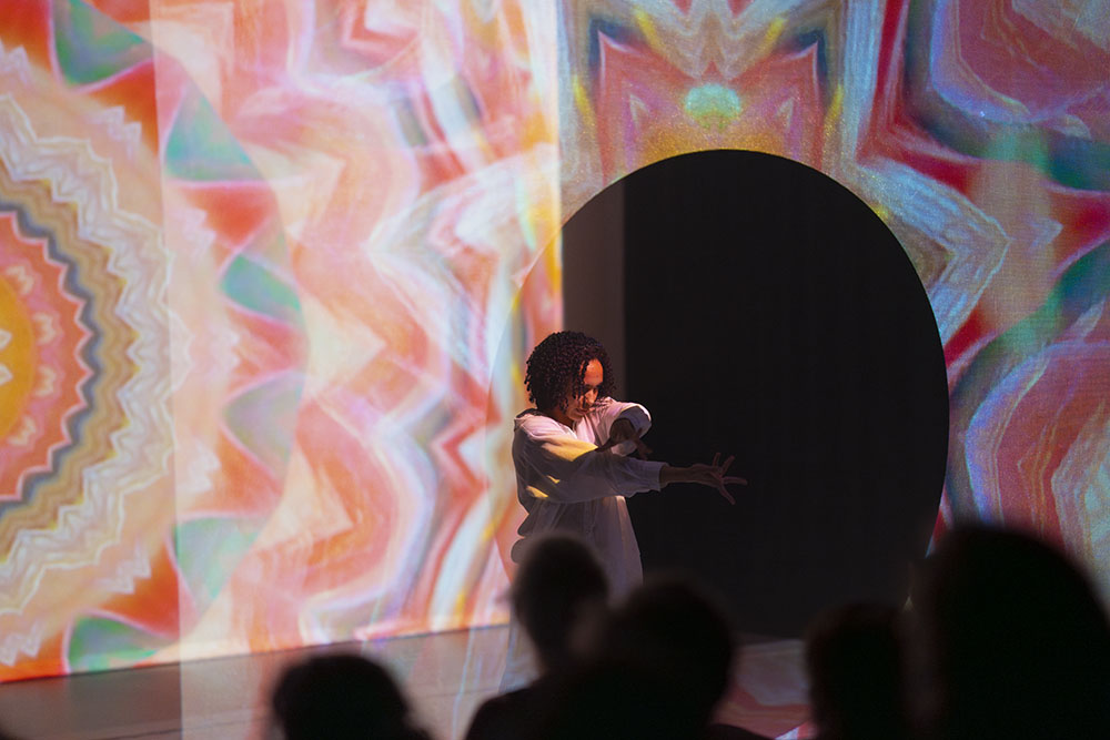 Other projects included Mas(c)k by Erin Meadors with visuals by Michael Pino, meanwhile by Elyse Fahey, which featured her works of visual art, and Loops(1) by Sarah Bennett-Davidson which used motion capture from Merce Cunningham with dancing by Elyse Fahey and sound by Blayne Greiner.